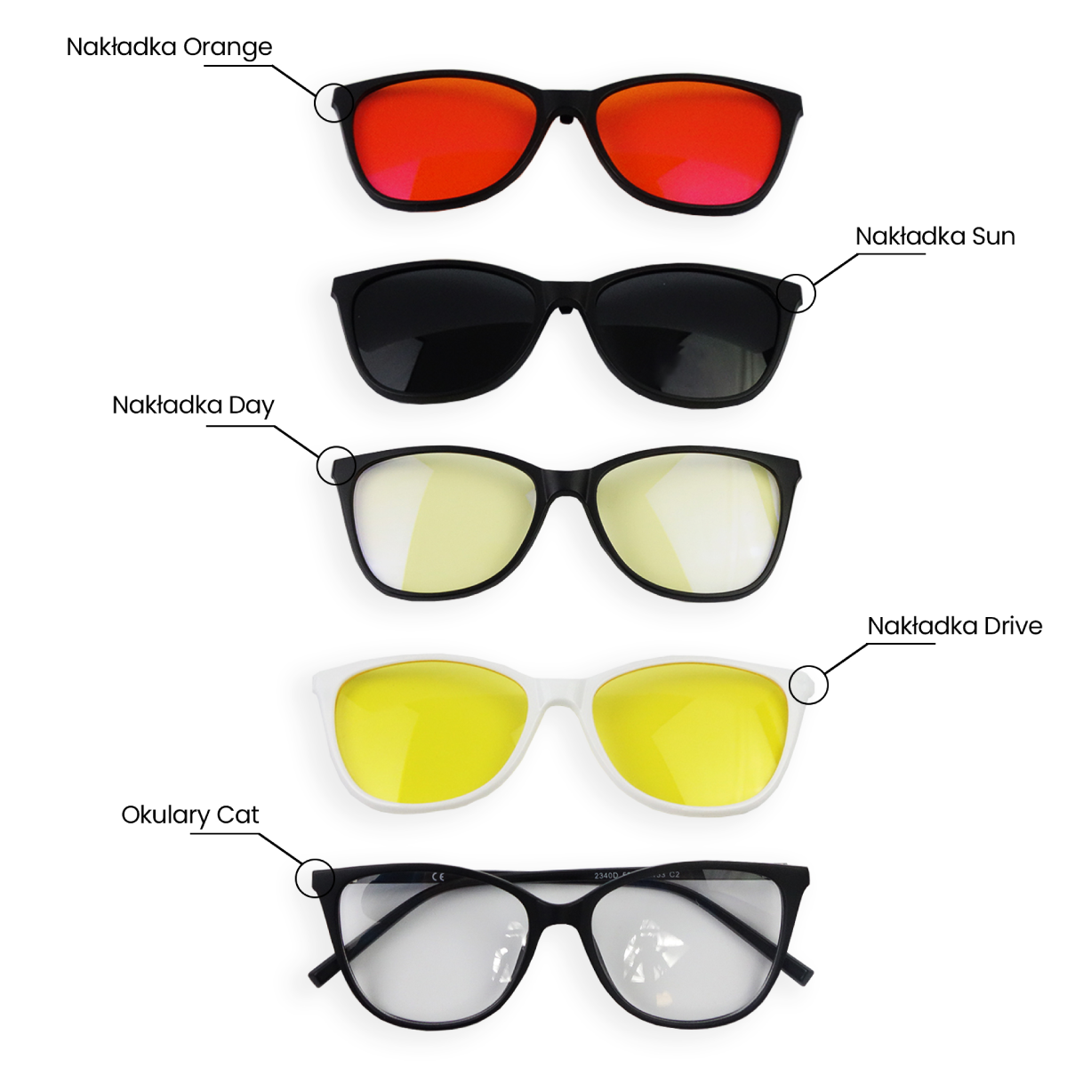 W oprawce Cat osadzimy szkła korekcyjne dostosowane do Twojej wady wzroku oraz dołączymy 4 magnetyczne nakładki!